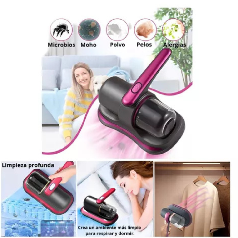 La Mini Aspiradora ÁcaroZero UV elimina ácaros, bacterias y polvo con tecnología UV-C y succión poderosa para un hogar más saludable, duerme mejor eliminando hasta el 99.9% de alérgenos con esta aspiradora compacta y potente. Protege tu familia de alergias con limpieza profunda en colchones, sofás y más, ideal para hogares con mascotas o personas alérgicas: ¡adiós a los estornudos!