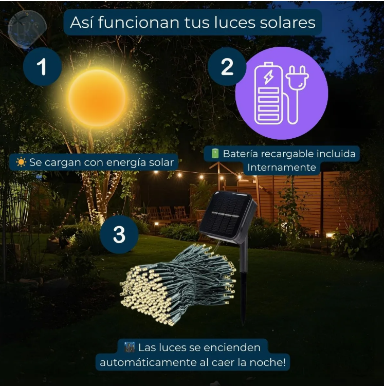 ✨Extensión Luz Solar 100 Luces – 10 Metros