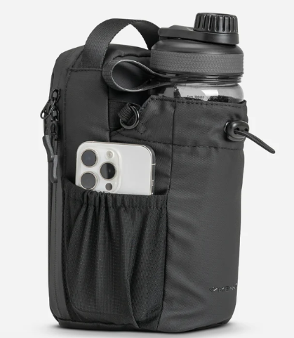El Gym Bag Magnético tiene bolsillos inteligentes, espacio central para tu botella 🚰 y compartimentos para celular 📱, llaves 🔑 y accesorios 🎧.