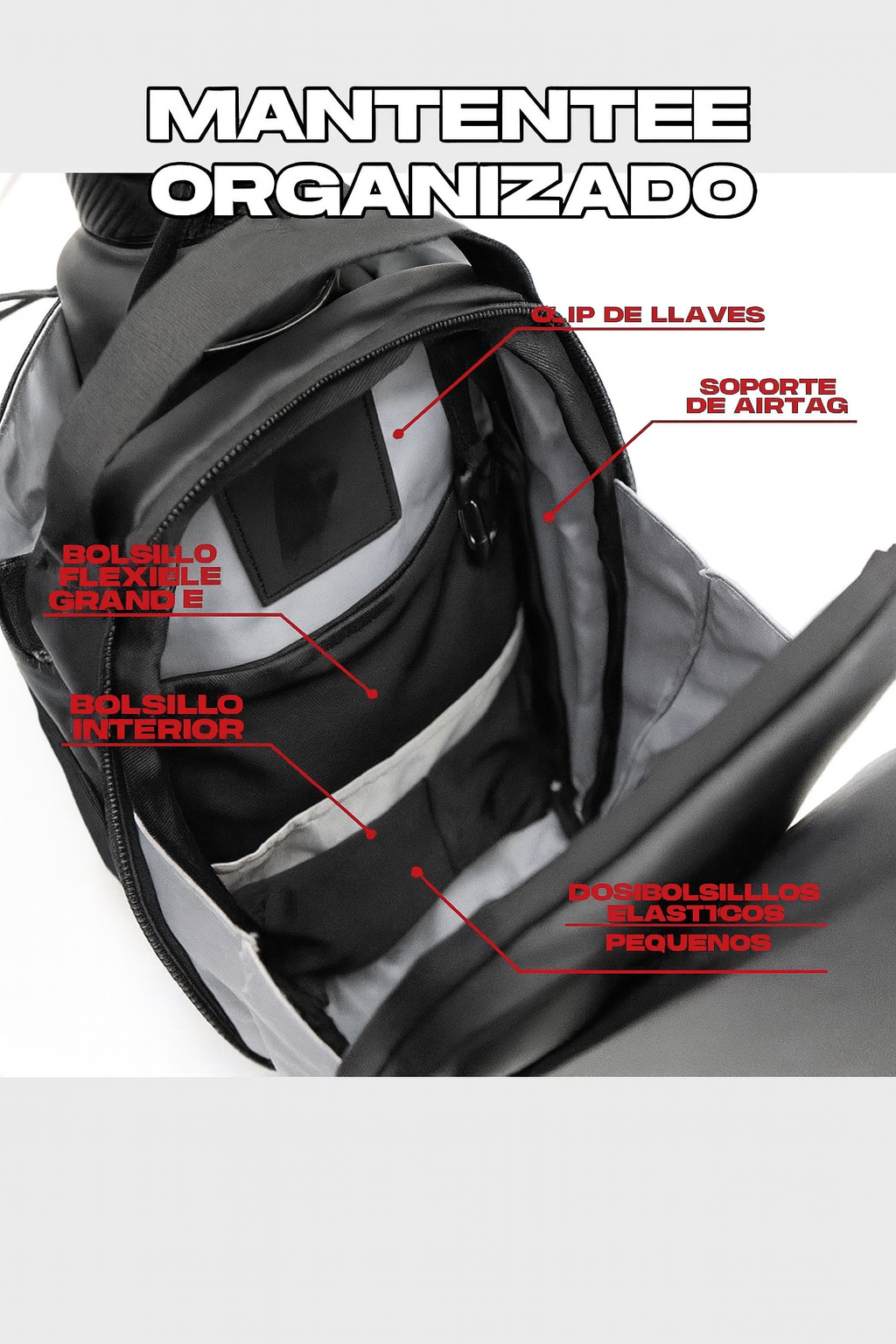 📦 Gran Capacidad y Organización – Compartimentos inteligentes para termo, celular, llaves y accesorios, todo en orden.