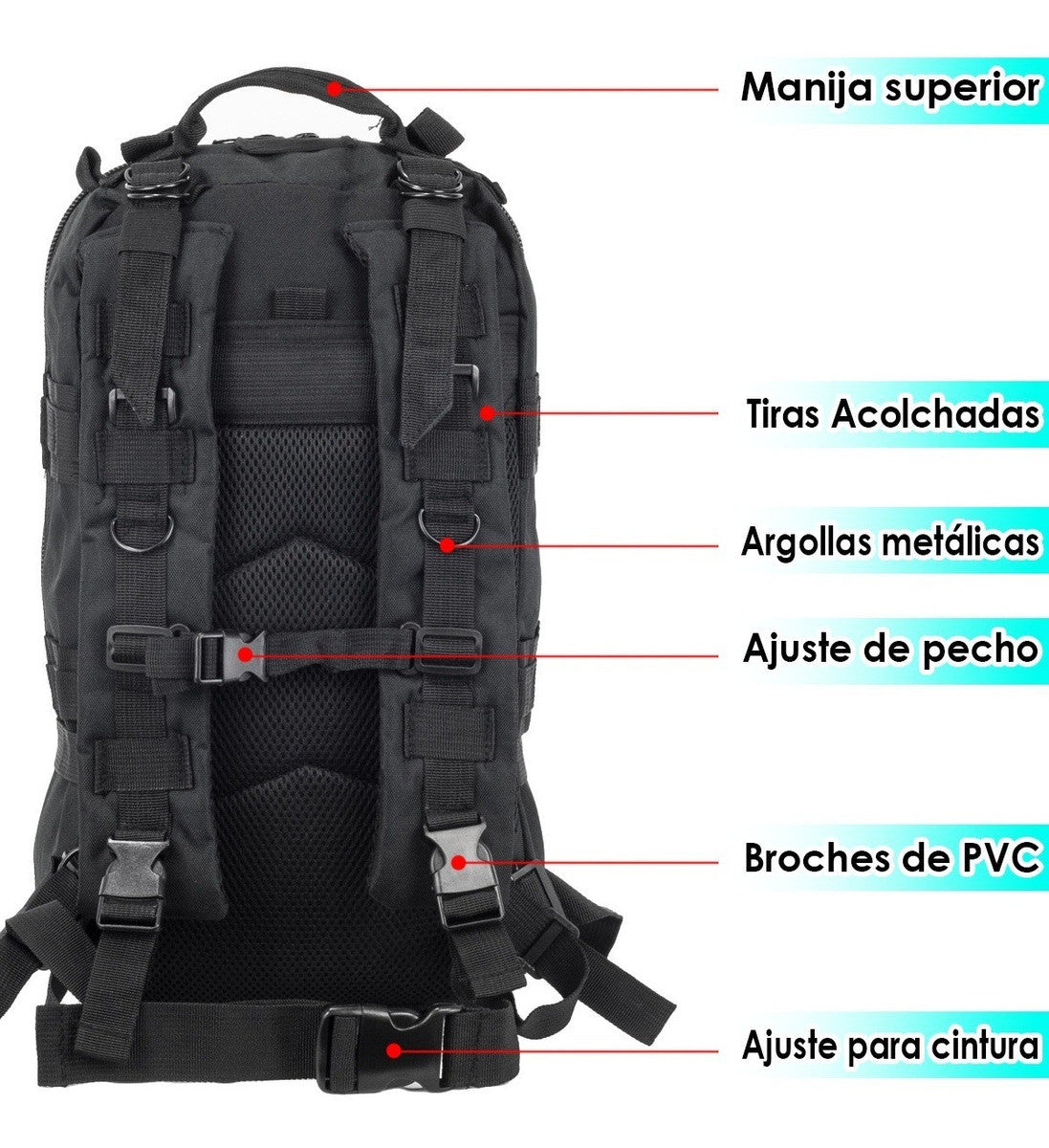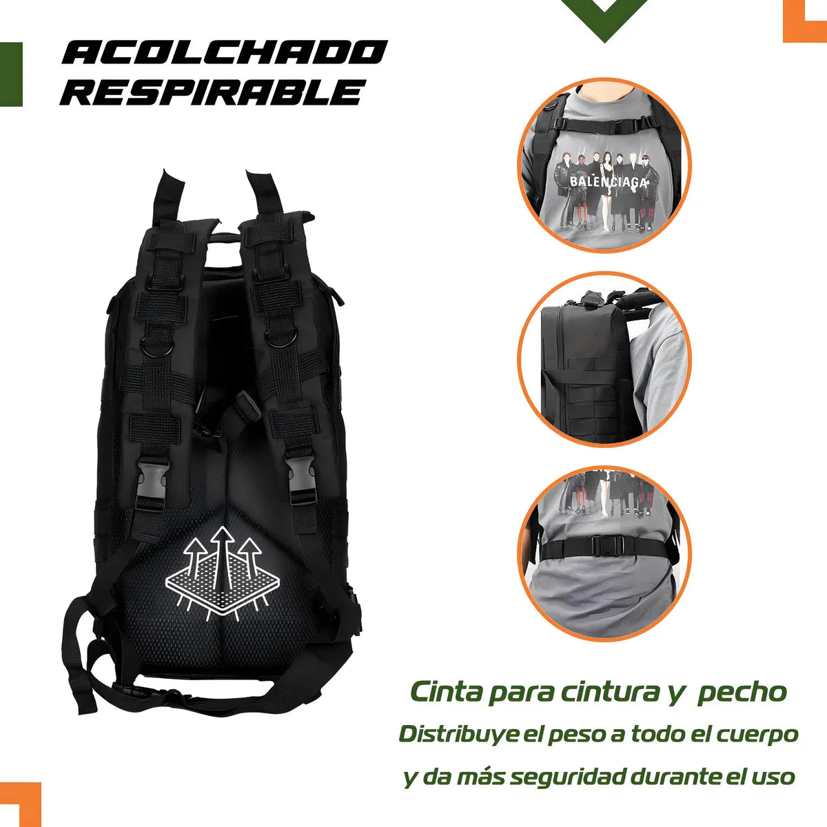 El Spartan Gear está hecho para quienes necesitan espacio, orden y resistencia total.Con su diseño militar, tela Oxford 600D impermeable, múltiples compartimentos y sistema Molle, te permite organizar tu equipo y enfrentar cualquier terreno. lleva COMPLETAMENTE GRATIS unos airpods M10 para acompañar tus aventuras.