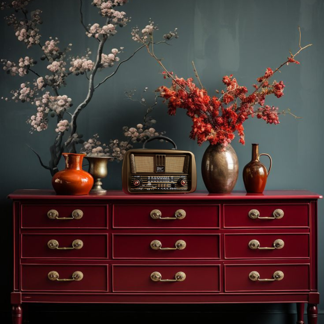Diseño vintage auténtico, sonido cálido y funciones modernas como Bluetooth, FM, AM, USB y más